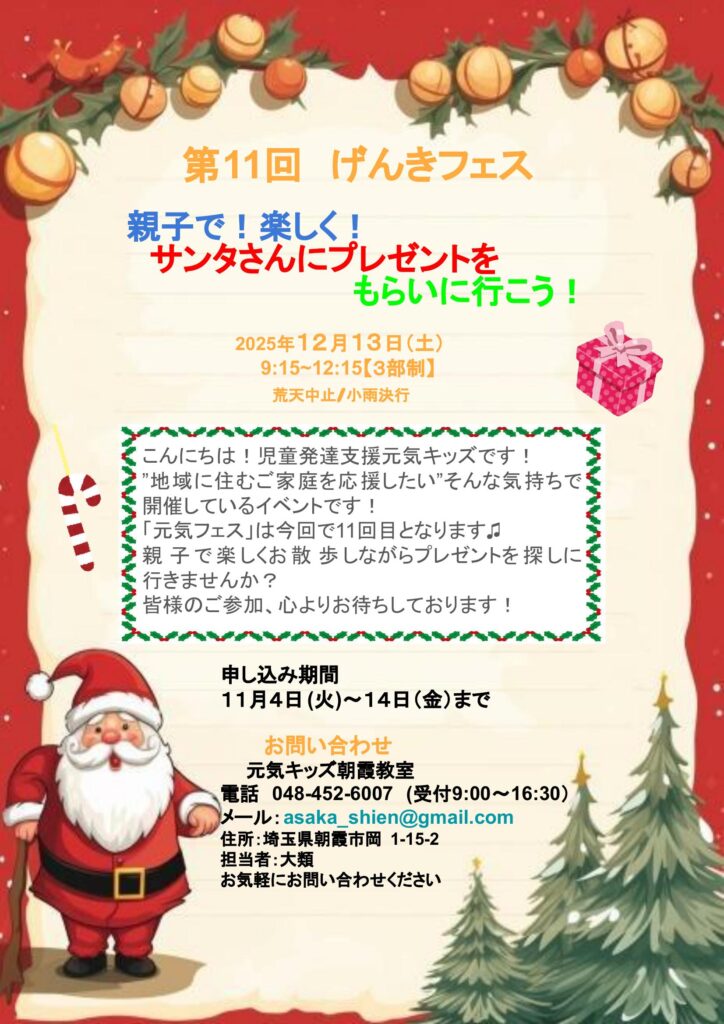 🎅朝霞教室にて『げんきフェス2025』開催のお知らせ🎄